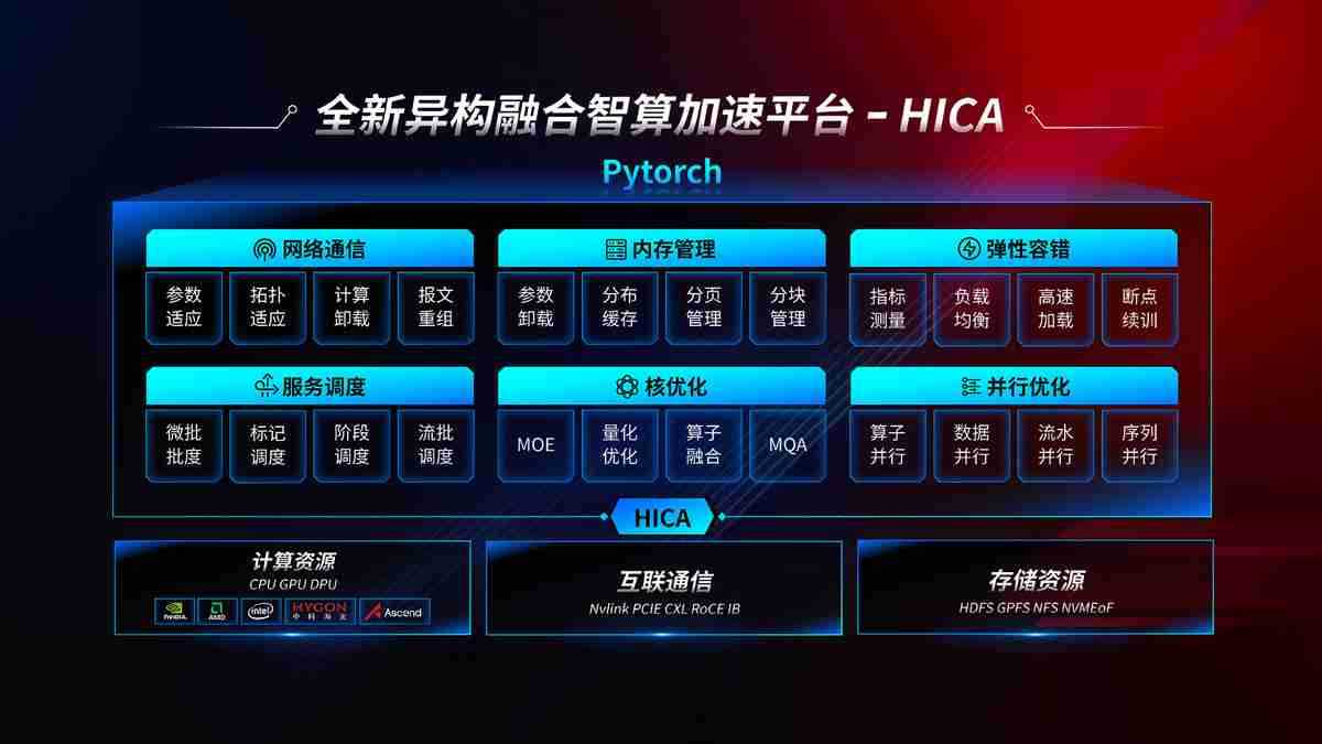通过自研的服务层、、中间适配层、、、、以及调度编排算法,,采用数据并行、、模型并行等多种并行方式,,,把并行计算任务进行有效的分解,,使其分别由相应的软件栈和算力资源来承接。。。当GPU资源变化,,,,HICA可以实时动态调度计算子任务并调整模型拓扑和架构,,,以充分聚合各种算力资源。。。。